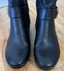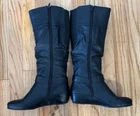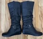 Occasion: Casual Accents: Zipper Season: Fall, Spring, Summer, Winter Toe Shape: Round Toe Country/Region of Manufacture: China US Shoe Size: 7 Insole Material: Leather Customized: No Upper Material: Faux Leather Model: Yuu Simona Closure: Buckle Lining Material: Fabric Personalize: No Color: Black Seller Notes: “Listed as pre-own but look like new. See photos.” MPN: N/A Pattern: Solid Outsole Material: Rubber Features: Breathable, Comfort Heel Height: Low (1-1.9 in) Shoe Shaft Style: Knee High Shoe Width: M Department: Women Theme: Classic Heel Style: Wedge Style: Riding Boot Type: Boot Vintage: No Brand: YUU