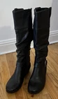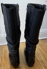 Yuu Boots Womens 7M Simona Tall Riding Black Faux Leather Knee-Hi Wedge Heels