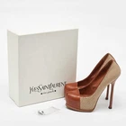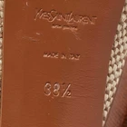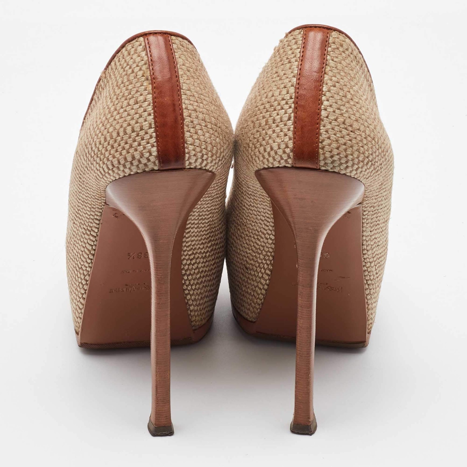 Our eBay Store About Us Contact Us Add to Favorite Sellers Yves Saint Laurent BeigeBrown Jute and Leather Tribtoo Platform Pumps Size 385 Product Details Brand Yves Saint Laurent Color Beige Includes Original Box, Extra Heel Tips Outsole Length 23 cm Outsole Width 7 cm Size 38.5 Certified by The Luxury Closet This item has gone through a detailed authentication process overseen by our experts. We offer a lifetime guarantee of authenticity on all our items. How We Check The in-house team of experts at The Luxury Closet is highly trained to verify the authenticity and the condition of the luxury products. They ensure that only 100% authentic items are put on sale.The evaluation process is unique with its own mix of assessment criteria and differs according to the category. Each item is evaluated based on the following combination of hallmarks, hardware, stitching, symmetry, material, craftsmanship, stamping, codes, hologram stickers, and packaging. Our authenticators also check if the items have been modified or amended (e.g., aftermarket diamonds, replaced batteries, repaired bags, etc.) International Buyers Import duties, taxes and charges are not included in the item price. These charges are the buyers responsibility. Please check with your country’s customs office to determine what these additional cost will be prior to buying.