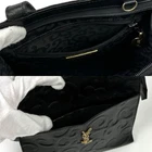 Yves Saint Laurent vintage shoulder bag with logo plate, unisex. Made of textured leather with gold hardware, can be worn crossbody or as a shoulder bag. Features a Cassandra design with a total pattern lining. Size: Height 7.87 inches, Width (opening) 8.07 inches, Width (base) 8.86 inches, Handle 16.14 inches, Shoulder strap 40.94 inches. The handle is soft and shows signs of use, but the bag can still be used for a long time. Color: Black. Material: Leather. Accessories: Shoulder strap. I promise fast shipping via FedEx or DHL as soon as possible! Import duties, taxes and charges are not included in the item price or shipping charges. These charges are the buyer’s responsibility. These charges are normally collected by the delivering freight (shipping) company or when you pick the item up - do not confuse them for additional shipping charges.
