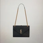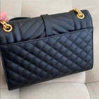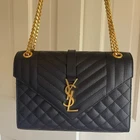 This YSL crossbody bag is a stunning blend of elegance and practicality. The black quilted leather with gold hardware gives it a luxurious feel, while the compact size fits all my essentials without being bulky. The adjustable strap is perfect for switching between shoulder and crossbody wear, and the magnetic closure keeps everything secure. The interior is well-organized with a main compartment and a flat pocket—so chic yet functional! It’s become my go-to for both day and night outings.