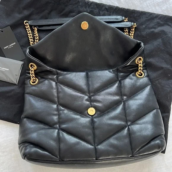 This YSL crossbody bag is a stunning piece—luxurious black leather with gold accents, barely used and stored with care. Comes with the original dust bag for protection. The compact size (23x8.5x15.5cm) makes it perfect for daily essentials while keeping a chic look. Smoke-free home, ready to ship fast. Open to fair offers!