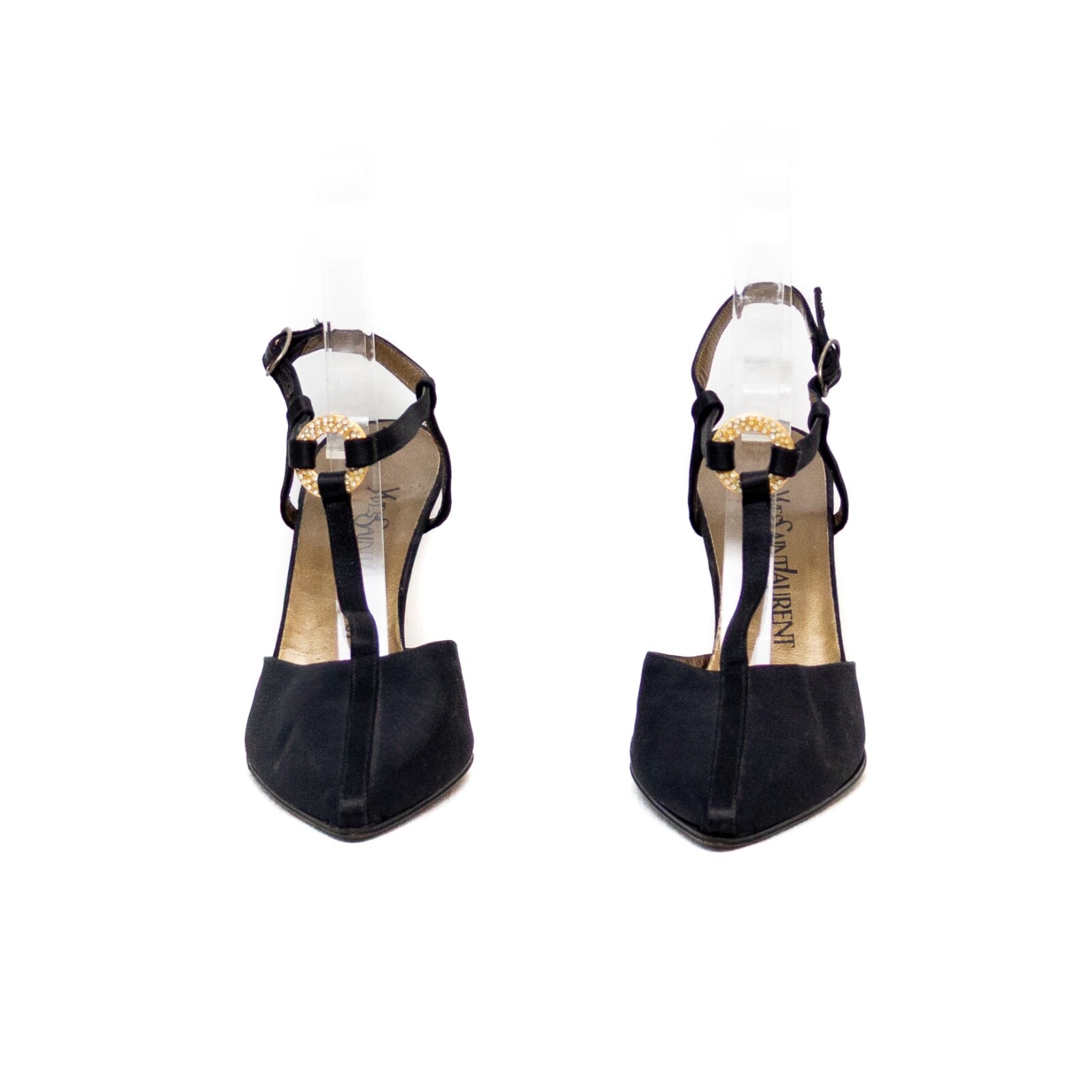 Vintage YSL Black Satin Cross-Strap Heels Size US 6 EU 36.5