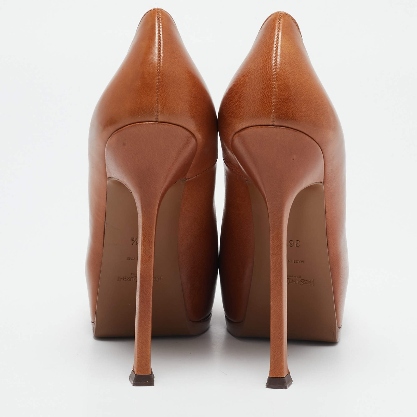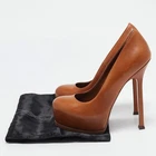 Our eBay Store About Us Contact Us Add to Favorite Sellers Yves Saint Laurent Brown Leather Tribtoo Platform Pumps Size 365 Fashionable and chic, these Tribtoo pumps from Saint Laurent will cut an alluring silhouette from day to night. Crafted from leather, the pumps have a brown shade, concealed platforms, and 14 cm heels. Product Details Brand Yves Saint Laurent Color Brown Includes Original Dustbag Outsole Length 19 cm Outsole Width 7 cm Size EU 36.5 (US 6/UK 3.5) Certified by The Luxury Closet This item has gone through a detailed authentication process overseen by our experts. We offer a lifetime guarantee of authenticity on all our items. How We Check The in-house team of experts at The Luxury Closet is highly trained to verify the authenticity and the condition of the luxury products. They ensure that only 100% authentic items are put on sale.The evaluation process is unique with its own mix of assessment criteria and differs according to the category. Each item is evaluated based on the following combination of hallmarks, hardware, stitching, symmetry, material, craftsmanship, stamping, codes, hologram stickers, and packaging. Our authenticators also check if the items have been modified or amended (e.g., aftermarket diamonds, replaced batteries, repaired bags, etc.) International Buyers Import duties, taxes and charges are not included in the item price. These charges are the buyers responsibility. Please check with your country’s customs office to determine what these additional cost will be prior to buying.