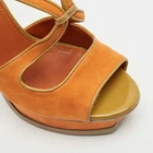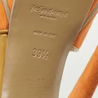 Vibrant and vintage inspired, these YSL sandals combine orange and green suede with glossy patent leather. Set on a sky high platform and chunky heel, they radiate retro glamour with a bold color blocked twist.Certified by The Luxury Closet - This item has gone through a detailed authentication process overseen by our experts. We offer a lifetime guarantee of authenticity on all our items. Import duties, taxes and charges are not included in the item price. These charges are the buyers responsibility. Please check with your country’s customs office to determine what these additional cost will be prior to buying. Our eBay Store About Us Contact Us Add to Favorite Sellers Yves Saint Laurent Orange/Green Suede and Patent Leather Platform Sandals Size 39.5 $298.1 Vibrant and vintage inspired, these YSL sandals combine orange and green suede with glossy patent leather. Set on a sky high platform and chunky heel, they radiate retro glamour with a bold color blocked twist. Product Details Brand Color Orange Dimensions Material Patent Leather, Suede Size 39.5 Outsole Width Outsole Length Heel Height Includes Certified by The Luxury Closet This item has gone through a detailed authentication process overseen by our experts. We offer a lifetime guarantee of authenticity on all our items. How We Check The in-house team of experts at The Luxury Closet is highly trained to verify the authenticity and the condition of the luxury products. They ensure that only 100% authentic items are put on sale.The evaluation process is unique with its own mix of assessment criteria and differs according to the category. Each item is evaluated based on the following combination of hallmarks, hardware, stitching, symmetry, material, craftsmanship, stamping, codes, hologram stickers, and packaging. Our authenticators also check if the items have been modified or amended (e.g., aftermarket diamonds, replaced batteries, repaired bags, etc.) International Buyers Import duties, taxes and charges are not included in the item price. These charges are the buyers responsibility. Please check with your country’s customs office to determine what these additional cost will be prior to buying.