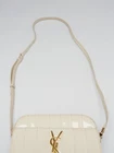 Yves Saint Laurent Crema Quilted Patent Leather Vicky Crossbody Camera Bag Description With the iconic initials in raised in crisp goldtone metal on the front, this bag continues in the vein of classic French style and simplicity. It features quilted patent leather and thin crossbody strap. The interior is large enough of fit your evening essentials and more. Retail price is $2150. Condition The exterior is clean but does have marks to the leather as well as rubbing and creasing. The strap has light wear to its gazed edges and is creased. The hardware has scratches but remains bright and shiny. The interior has light signs of use, but remains clean throughout. Details Overall Condition: Gently used Exterior Condition: Gently used Interior Condition: Gently used Includes: None Material: Ivory Quilted patent leather Handles: Single flat patent leather adjustable shoulder strap Closure/Opening: Two- way zipper closure Interior Lining: Fine textile lining Interior Pockets: One flat pocket and four card slots Hardware: Goldtone Origin: Italy Production Year: 2019 Handle Drop: 20" adjustable Measurements: 6.75" L x 2.75" W x5.75" H Date/Authenticity Code: BMB555052-0119 Guaranteed Authentic Only 100% authentic bags earn the tag! We guarantee the authenticity of every item we sell or 100% of your money back including original and return shipping costs. We're experts in distinguishing the "wanna-bes" from the "real deal." Whether it's a handbag or necklace, determining the authenticity of an item is a mix of art and science. Items such as stampings, symmetry, stitching, hardware, authenticity stamps, as well as overall workmanship and materials are inspected and determined to be consistent with the manufacturer's established standards of quality. If applicable, manufacturer date codes and serial numbers are verified for consistency. Lastly, the item is compared to on-hand authentic reference items. Payment We accept Paypal along with Visa, Mastercard, American Express, and Discover. We request full payment immediately upon purchase. Hassle-free Return Policy We guarantee the authenticity and condition of each item we sell. If you are not completely satisfied with your purchase, you may return it within 15 days of shipping date for a prompt refund. Hassle-free returns means that you don't have to contact us prior to returning an item. All we ask is that you do not remove the Authenticity Seal attached to your item and that you return the item in the condition you received it. We also ask that all original papers and box are returned. We cannot accept return items that do not meet this criteria. To return your order for a refund, please initiate the return within your eBay account. Within 2-3 business days upon receipt, you will be issued a refund for the original sales price and any taxes in the same form as the original payment method. Please note that this credit will not include any original shipping charges. Shipping Fees Our goal is to process your order quickly and ensure its safe delivery. We offer free shipping for all domestic orders and flat rate shipping fees for expedited and international orders regardless of how many items are in your order. Please note that we cannot ship to P.O. boxes. Shipping Method Fee per Order Standard (UPS Ground) FREE Expedited (UPS 2 Day) $15 APO/FPO, Alaska, and Hawaii (USPS Priority Insured) FREE Canada (USPS Priority Insured) $15 International (USPS Priority Insured) $15 International (USPS Express Insured) $25 About Us We know that shopping for new luxury goods at high-end retailers can be a luxurious and satisfying experience. We strive to deliver the same high quality experience and level of service for pre-owned goods. Never considered giving a pre-owned luxury item as a gift? Every order is presented and packaged to standards that match or exceed luxury retail stores and therefore make great gifts (especially if it's a gift for yourself!). For every order, take a look at what comes in the box: Professionally cleaned and rejuvenated luxury item with "Guaranteed Authentic by Yoogi's Closet" hang tag and seal. "Guaranteed Authentic by Yoogi's Closet" enclosure card. Care instructions and message from Yoogi. Invoice and return instructions. Original box, dustbag, and enclosed materials* * Note that select pre-owned merchandise will arrive with these items. Please refer to the product description page on the Yoogi's Closet website for details. Have Authentic Luxury Handbags or Jewelry to Sell? If you are having problems selling your authentic luxury handbag on eBay, we can help! We pay top dollar for quality, gently used luxury handbags. Learn more about our selling and consignment services.