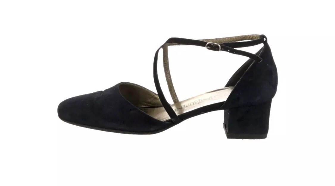These Yves Saint Laurent vintage suede pumps are a stylish choice for women in size 6.5. The blue color and suede material give them a luxurious and elegant look, perfect for formal occasions or adding a pop of color to any outfit. The pump style and brand reputation of Saint Laurent ensure a high-quality and fashionable addition to any woman's shoe collection. Pre owned Description • Yves Saint Laurent Vintage Pumps • Blue Suede • Semi-Pointed Toes • Crossover Straps & Buckle Closure at Ankles Designer Fit: Pumps by Yves Saint Laurent typically run a half size small. Estimated item measurements Heels: 1.75" Gender: Women Details: Heavy discoloration at insoles; moderate creasing at vamps; moderate residue at insoles; wear at soles