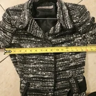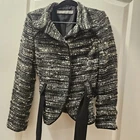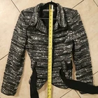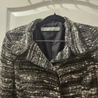 This is a cute blazer, it has a chunkey k it look but is lightweight The buttons are hidden when buttoned up. There is a snap on the collar to hold it closed, I assume in cold conditions? See photo Excellent condition with no flaws