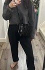 Very well made small bag Adjustable strap 5 hole can adjust length 19.5. Inches Longest Wear shoulder or crossbody (see photos I am 5ft4 for reference ) Or remove the straps wear as clutch Super cute Come with A dust bag