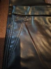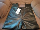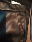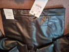Elevate your style with these chic ZARA faux leather leggings in a classic black color. These skinny pants are perfect for any occasion, whether it's for travel, party/cocktail, casual or business. The pants feature a flat front, lined interior, and a comfortable stretch material that will make you feel great all day long. The pants also come with pockets and an ankle zipper for added convenience. The ZARA leggings are made of high-quality polyester and are available in size M with a waist size of 29 inches and an inseam of 27 inches. Upgrade your wardrobe with these stylish leggings that will keep you looking great no matter the occasion. Very small indent shown on last picture.