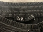 ZARA BLACK FAUX LEATHER SWEATPANTS PANTS POLYURETHANE SIZE XS ELASTIC WAISTBAND WITH DRAWSTRINGS AND ELASTIC CUFF ONE FAUX POCKET ON BACKSIDE WHEN FLAT, APPROX 12.5 ACROSS WAIST, 25.5 INSEAM, 36" TOP TO BOTTOM