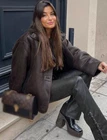 ZARA CONTRAST FAUX SHERLING DOUB ZARA CROPPED DOUBLE-FACED BROWN & BLACK RELAXED FAUX SHEARLING LEATHER EFFECT AVIATOR JACKET Require Immediate Payment No Cancellation After Pay Product Code: 3548/240 EAN: 3548240700016 Sold out completely! Condition: Brand new without tags in store condition. Label pic: This image is for illustration purposes only. You will recieve the size that you have ordered. Available in size: XS, S, M Measurements Measurements are for guidance purpose only. XS Sleeves: 21.6"/55cm Shoulder: 20.8"/53cm Chest x2 (pit to pit): 47.2"/120cm Hem x2: 44.9"/114cm Full length (from nape of neck to hem): 25.6"/65cm S Sleeves: 22"/56cm Shoulder: 21.2"/54cm Chest x2 (pit to pit): 48.8"/124cm Hem x2: 47.2"/120cm Full length (from nape of neck to hem): 26"/66cm M Sleeves: 22.44"/57cm Shoulder: 21.6"/55cm Chest x2 (pit to pit): 49.6"/126cm Hem x2: 50.4"/128cm Full length (from nape of neck to hem): 26.8"/68cm Please note, colour may show differently due to monitor display settings. Actual item: Details: Description: Stay on top of the trend whilst keeping yourself warm and cosy with this bloggers favourite double faced aviator jacket. This is one of Zaras most popular jackets this season! This must have double faced aviator jacket from Zara's latest collection is made of a leather effect recycled polyester fabric with matching faux shearling lining. This jacket is cropped in length and features a wide lapel collar and long sleeves with front patch pockets and a button up front. This is the ultimate stylish and practical winter coat to keep you warm during the cold weather. Materials: OUTER SHELL 100% polyester LINING 100% polyester Return policy: We accept returns within 14 days of purchase, providing that the item is returned in its original condition with all tags still intact. If item is not returned in original plastic bag, there will be a £2 deduction from your refund. Please note that we DO NOT refund any postage costs. Please click here to visit MY SHOP for exciting latest fashion inspirations!