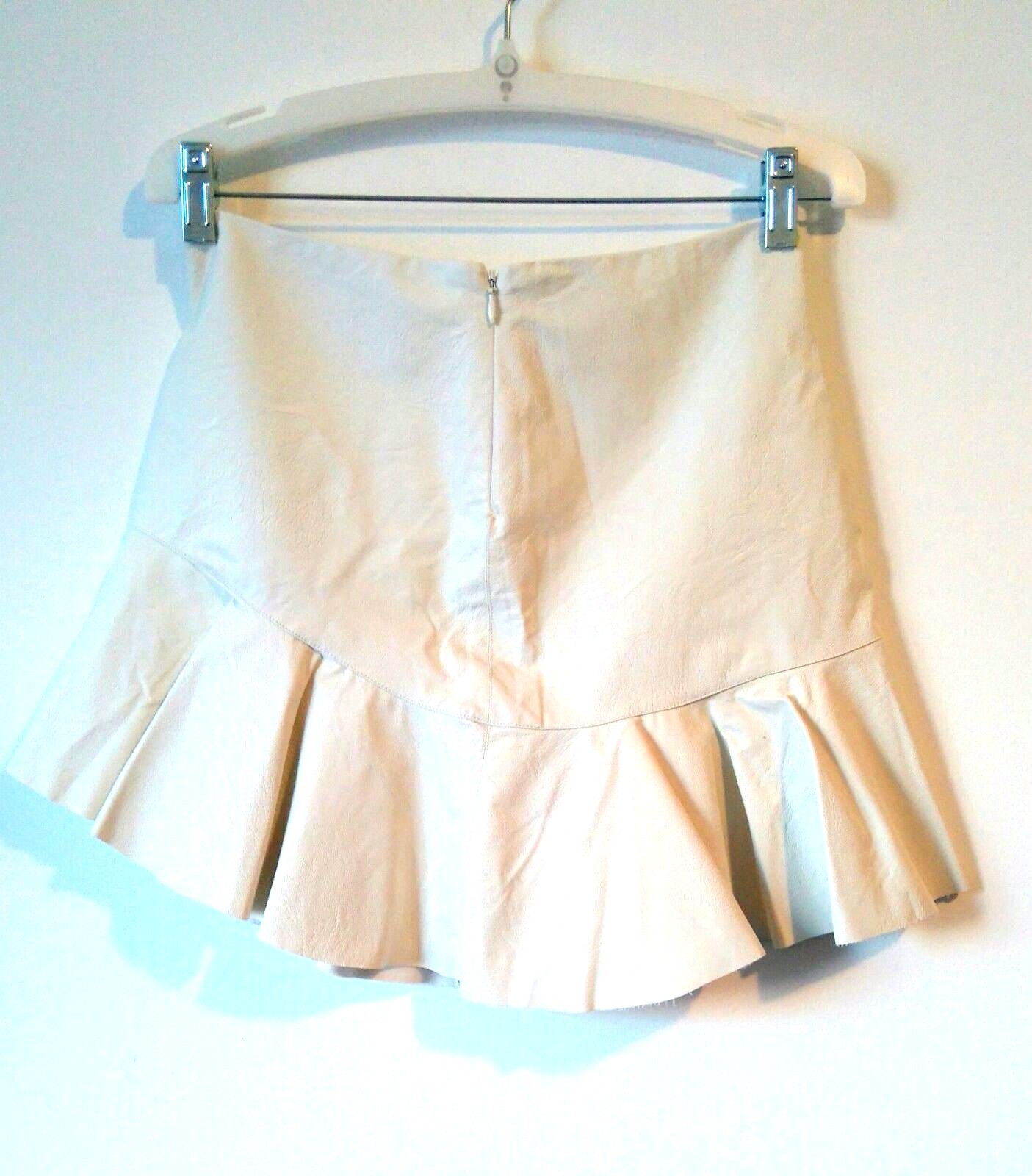 ZARA FAUX LEATHER FITTED MINI SKIRT WITH RUFFLE WHITE SIZE S