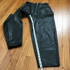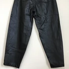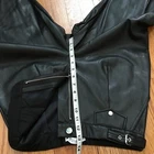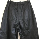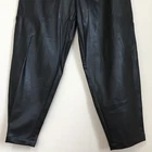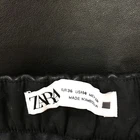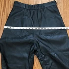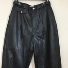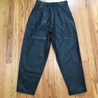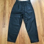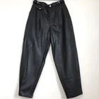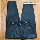 ZARA High Waist Black Faux Leather Slouchy Pleated Moto Pants excellent like new condition, no sigh of wearing, no stains, no flaws size: 4, measurements are photographed Classic black faux leather moto style pants by ZARA, featuring a slouchy fit and little flap pocket (as traditionally seen on full length moto jackets). Jeans-style patch pockets at rear, slant hand pockets at front. Zip fly, button closure. Vegan friendly faux leather. 100% viscose lining, 100% polyurethane exterior