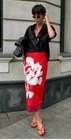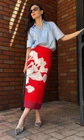 Mid-rise midi skirt made of a spun linen blend. Contrast floral print. Back slit at the hem. Invisible side zip fastening. Garments with graphic motifs and vibrant tones take centre stage this season. This straight skirt offers a contemporary take on floral prints with a side design applied to a soft fabric with a spun linen blend. OUTER SHELL 53% linen 47% cotton LINING 100% polyester