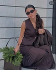 The ZARA New Woman Combined Pleated Knit Skirt and Matching Top Set in Brown, size S, is a stylish and versatile co-ord set perfect for a variety of occasions. Made from a blend of polyester, viscose, and polyamide, this high-rise skirt features pleats for added detail. The set includes a matching top, making it easy to put together a complete and coordinated outfit. Ideal for parties, casual outings, workwear, or business meetings, this set from Zara is designed to make a statement and elevate your wardrobe.