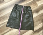 ZARA Olive Green Faux Leather Skirt Size Small. -In Great Condition! -Olive Green Color -Elastic Waist -Front Pockets -A-Line -BIN20