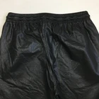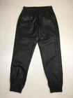 DESCRIPTION OF ITEM: A76P Measurements ( approx. ) one side, while item is laying flat on surface - NOT stretched . Waist: 12.5-13+" Length: 35-35.5" Inseam: 25.5-26" Front rise: 9" ADDITIONAL INFO: No care or fiber content label, could be Polyurethane. Not lined. Pull on/elastic waist with drawstring. Faux leather jogger pant. Have pockets. FROM PET/SMOKE FREE ENVIRONMENT. IF YOU HAVE ANY QUESTIONS, PLEASE ASK, I WILL HAPPILY ANSWER THEM. ANY ISSUES, PLEASE CONTACT ME- I WANT YOU TO BE HAPPY WITH YOUR PURCHASE AND HAVE A PLEASANT SHOPPING EXPERIENCE. THANK YOU FOR SUPPORTING OUR SMALL FAMILY BUSINESS - WE TRULY APPRECIATE YOU!!