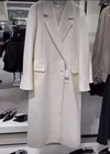 This Zara ZW Collection tailored wool blend coat in white, size XS features a long length with a button closure. The coat is made of wool with viscose lining and has a collared neckline and pockets. It is designed for autumn and winter wear, making it a stylish and functional addition to a woman's wardrobe.