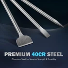 ZELCAN Chisel Set with SDS Max Shanks, 3pc Masonry Concrete Drill Bit Set, 18" Flat Point Scaling Chisels 40Cr Steel SDS Max Bits Rotary Hammer Drill Home Improvement Tool Kit for Brick Stone Concrete Product Details Brand: ZELCAN Blade Edge: Straight Blade Material: Alloy Steel Manufacturer: CO-Z ALL-IN-ONE KIT: This multifunctional 3 piece chisel set by Zelcan includes a flat chisel, point chisel, and scaling chisel, so you can work on any material from ceramic tile to concrete, brick, and masonry to real and artificial stone, including granite SDS MAX SHANKS: These drill bits with 0.7" diameter slot perfectly into your SDS Max hammer drill regardless of manufacturer, compatible with Bosch, DeWalt, Makita, Milwaukee, Hilti, or any other NONSLIP CONNECTION: Our handles are crafted for tight nonslip use thanks to the precise grooves and powerful torsion resistance, giving you a long-lasting service life even under punishing use HEAVY-DUTY CONSTRUCTION: This SDS Max drill bit set is made from high quality chromium steel that has been drop forged and heat tempered to give you optimal strength and superb corrosion resistance VERSATILE USE: Change each SDS Max bit quickly and conveniently to handle different demolition jobs, from large-area scaling to precise edge work, from tile removal to groove cutting