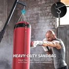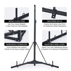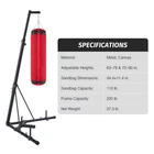 Features Expertly Constructed: Our punch bag stand is crafted with extra strength heavy gauge tubular steel, and powder coated for durability and corrosion resistance; its frame accommodates bags up to 220 lb. Adjustable Design: Change the pole's height with the adjustment dial, and bolt the support beams in two spots to change the angle; depending on the angle the height range is adjustable from 63 to 79 inches or 72 to 90 inches. Balanced Base: The wide reinforced base provides unmoving performance during your hardest workouts; add more weight to the base while storing your weightlifting plates (not incl.) on this gym equipment's 3 plate holders. Durable Sandbag: This heavy-duty canvas punch bag easily holds up to 110 lb. of sand (not incl.) to get you started immediately; 2 reinforced loops on the frame also accommodate your resistance bands for extra training. Easy Assembly: Our heavy bag stand sets up and dismantles within minutes thanks to the clear design and easy-to-follow instructions; it also folds neatly for convenient storage between sessions to save space. Specifications Material: Metal, Canvas Color: Black Adjustable Height: 63-79 & 72-90 in. (160-200 & 182-228 cm) Sandbag Dimensions: 34.4 x 11.4 in. (95x29 cm) Sandbag Capacity: 110 lb. (50 kg) Frame Capacity: 220 lb. (100 kg) Net Weight: 37.3 lb. (16.9 kg) On Jun 25, 2024 at 03:38:08 PDT, seller added the following information: