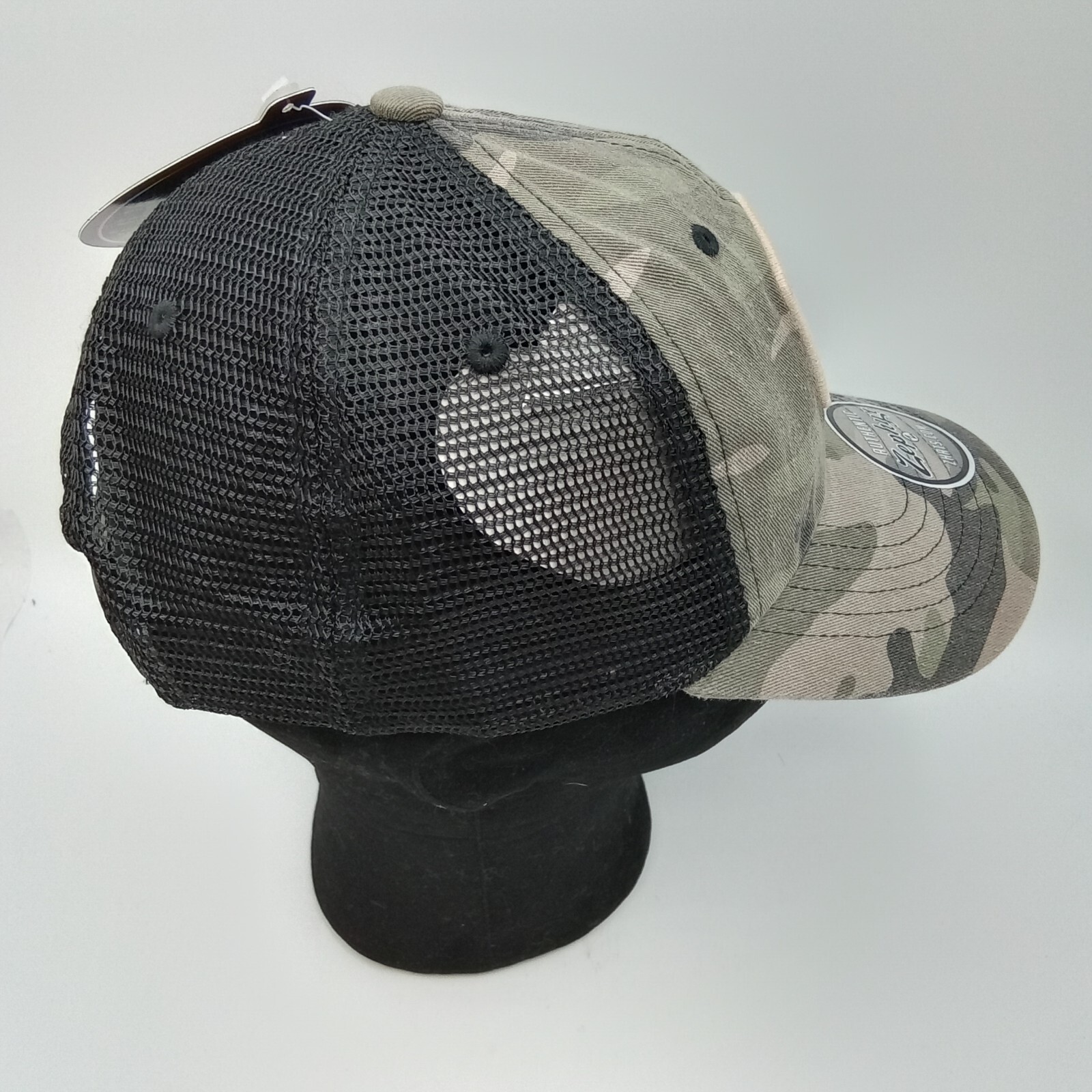 NWT. Show your team spirit with the ZEPHYR NCAA Alabama Roll Tide Rambo Trucker Cap. This stylish camo-colored cap features a prominent 'ROLL TIDE A' embroidery, letting you cheer for the Alabama Crimson Tide with pride. The snapback design ensures a comfortable, adjustable fit for all-day wear, while the mesh back adds breathability to keep you cool. Ideal for any unisex adult fan, this cap is a versatile addition to your wardrobe, whether you're at the game or just out and about. The cap's durable construction and timeless design make it a must-have accessory for any supporter of the Alabama Crimson Tide. HAT BOX 8 - 1938