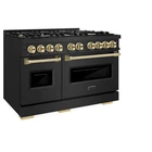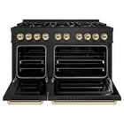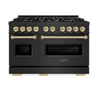 ZLINE Autograph Edition 48 in. 6.7 cu. ft. Classic Double Oven Gas Range with 8 Burner Cooktop in Black Stainless Steel and Polished Gold Accents (CGRBZ-48-G) PRODUCT DESCRIPTION Luxury isn’t meant to be desired - it’s meant to be attainable. The ZLINE Autograph Edition 48 in. 6.7 cu. ft. Classic Double Oven Gas Range with 8 Burner Cooktop in Black Stainless Steel and POLISHED GOLD Accents (CGRBZ-48-G) combines the elegance of a hand-finished porcelain gas cooktop with 8 Italian-made auto-reignition burners, a large gas convection oven with an energy-efficient cooling fan to ensure quiet operation, a small baking oven, Landscape oven door window designs, and stunning POLISHED GOLD knobs and handles allowing you to master every meal. With a modern, timeless style and refined functionality, ZLINE Classic Gas Ranges are masterfully crafted to deliver an elevated culinary experience. This product contains many unique features such as: ZLINE Classic Series - The ZLINE Classic Professional Range Series features timeless design sensibilities and innovative features engineered with luxury and affordability in mind Exclusive Knobs and Handles - Customize your ZLINE Autograph Edition Gas Range with elegant POLISHED GOLD knob and handle accents Italian-Made Auto-Reignition Burners - 8 Italian-made gas burners utilize automatic reignition innovation for improved temperature control and cooktop safety Convection Gas Oven - The larger oven features bake, broil, and convection modes with an output of 22,000 BTUs, while the smaller oven has a baking output of 14,000 BTUs Landscape Oven Windows - ZLINE Classic Series ranges feature a sleek Landscape oven door design that provides ample viewing space to ensure dishes inside both ovens are perfectly cooked Dual Function Burners - Expand your cooking capabilities with 2 Dual Function Burners that allow you to simmer at 800 BTUs or perfectly sear at 20,000 BTUs Ultra Quiet Operation - Enjoy peace in the kitchen while ensuring temperatures are at safe levels via a built-in cooling fan that operates with minimal sound Reversible Cast-Iron Griddle - A high-quality nonstick reversible cast iron griddle features a grill side for perfect sears on steaks and vegetables and a flat side for sandwiches and hearty breakfasts Stainless Steel Oven Burners - Tubular bake and broil burners are manufactured for optimal gas combustion with more even heat distribution for an ideal baking experience Large Oven Capacity - An expansive oven capacity of 6.7 cu. ft. fits pans up to 20 in. wide in the larger oven and 10 in. wide in the smaller oven for maximum space and convenience with everyday cooking StayPut Oven Door Hinges - Designed to support the full weight of the oven doors, offering additional convenience and safety Premium Oven Insulation - A 3-layered glass door on both ovens with large viewing windows and aluminum mesh seals offer superior heat retention and consistent temperatures Smooth Glide Ball-Bearing Oven Racks - 4 durable ball-bearing racks, 2 inside each oven, provide extra convenience and ease when working with larger dishes Black Stainless Finish - Featuring stunning black stainless steel and durable cast iron grates that exceed standards for a true professional experience Halogen Oven Lights - Illuminate both oven spaces with 3 halogen lights, controlled by a switch conveniently located on the front control panel Minimal Cleaning - Hand-finished porcelain one-piece cooktop allows for easy cleaning and maintenance LP Conversion Kit - Comes equipped with an LP conversion kit to convert from natural gas to liquid propane (must be done by a professional), offering versatility with your cooking preference Industry First Lifetime Burner Warranty - Limited lifetime warranty on ZLINE Italian burners includes part replacements for burners and burner caps, and parts and labor for spark tips if parts prove to be defective in materials or workmanship Manufacturer Warranty - 1-year parts and service warranty Dimensions: 47.88 in. W x 27.75 in. D x 36 in. H Interior Oven Dimensions 13.38 (left) /24.88 (right) in. W x 17.75 in. D x 16 in. H Cutout Dimensions 48.13 in. W x 24.75 in. D x 36 in. H Open Door Depth 45.1 in. Oven Capacity (cu. ft.) Overall: 6.7 cu. ft. Left: 2.5 cu. ft. Right: 4.2 cu. ft. Number of Racks 2 Installation Type Freestanding Timer (Y/N) No Self Cleaning (Y/N) No Outdoor Approved (Y/N) No Broil (Y/N) Yes Additional Features Includes Griddle Burner Fuel Natural Gas (Includes Liquid Propane Conversion Kit) Oven Fuel Natural Gas (Includes Liquid Propane Conversion Kit) Number of Burners 8 Electrical Requirement 120V/60Hz/15A Material Black Stainless Steel with Brass Burners Accent Finish POLISHED GOLD Convection Fan Yes Warranty 1 Year Parts and Service, Limited Lifetime on Burners Certifications ETL Listed ebay message ABOUT ZLINE The Range Hood Store is a family operation, founded on solid business practices and the philosophy of honest business. We are incredibly proud of our store and the products that we manufacture. We believe in exceptional customer service and supplying a quality and pleasant experience. Payment Shipping Returns Payment Shipping Returns What are your payment methods? • All major credit and debit cards, including VISA, MasterCard, Discover, and American Express • PayPal We do not accept COD orders. Credit Card Orders: Shipping address must be on file and confirmed by credit card issuer, except for American Express orders, which must be shipped to the billing address only. Most items are shipped via FedEx Ground , except where noted (some models will be shipped via fedex Freight, due to their size and/or weight). Tracking number(s) will be provided by E-mail by the end of the next business day (8PM EST). All items ordered Friday - Sunday will be processed and shipped the Monday proceeding the order. All other orders will be shipped the next business day. Fast Shipping Items that ship fedex ground will take 1-5 business day