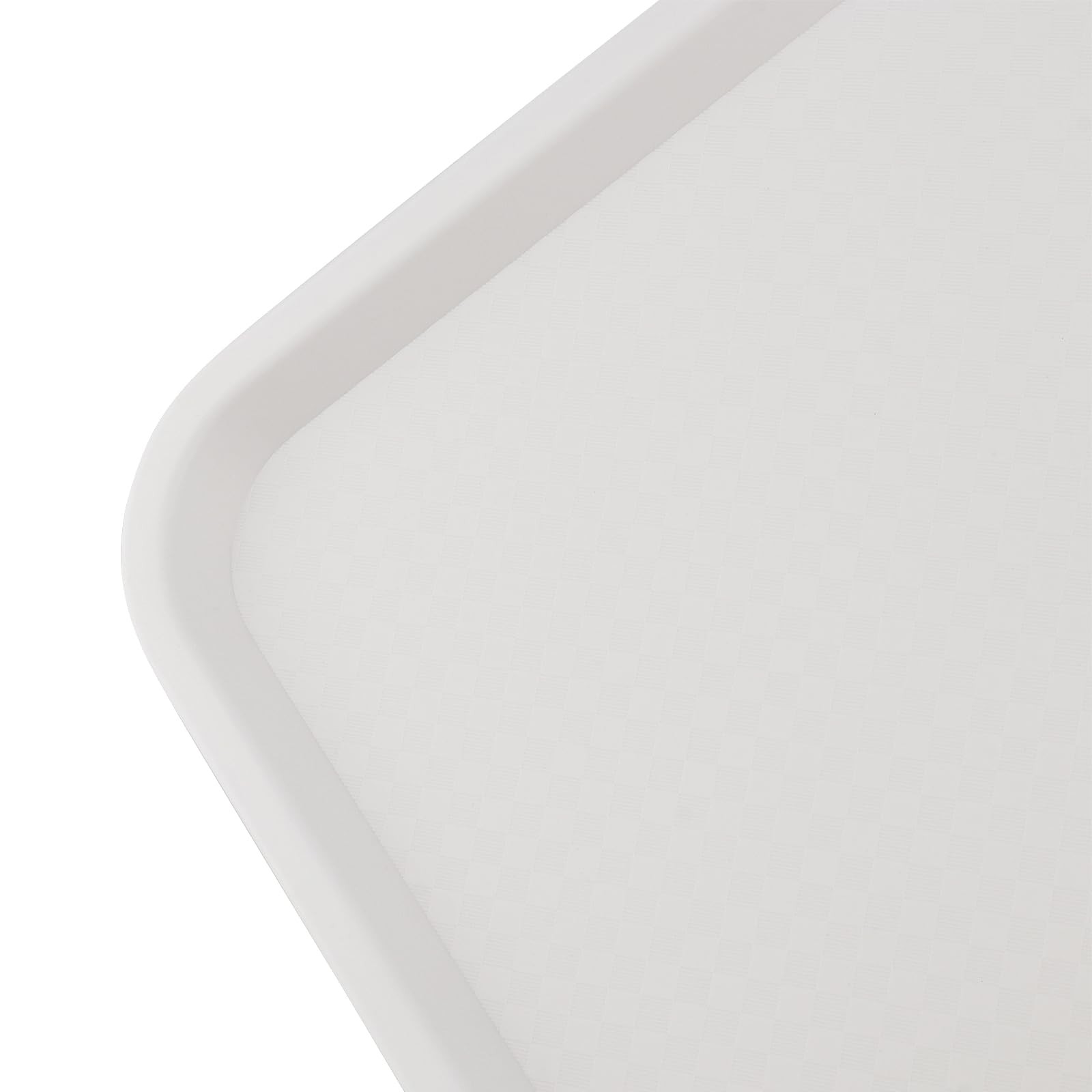 SUPERIOR QUALITY - The fast food tray is made from high impact heavy duty PP plastic, not that thin brittle stuff that breaks easy. It's thick enough, fairly sturdy and has smooth edges, will not easily break, crack or warp. ANTI SLIP DESIGN - This is a plastic rectangle plastic fast food tray with raised edges that keep your small parts from falling and your drinks spilling. The anti slip design on the interior texture surface prevents dishes and other items from sliding while moving while carrying the tray. EASY TO CARRY - Each 16 x 12 inch white plastic tray is lightweight, easy to carry, can be used in carrying and consolidating parts for crafting, assembling items, and other activities, keep items close by and help prevent messes. Also great for serving food other than in the kitchen or dining room, such as carrying meals or snacks into other rooms. DISHWASHER SAFE - The plastic cafeteria trays are easily washed up and stackable when not in use, without taking up too much space. Not only can used as fast food establishments but also for breakfast in bed, picnics, coffee shops, cafes, cafeterias, and food festivals. WORRY-FREE SHOPPING - Please do not hesitate to contact us if any issues with our plastic serving trays, 7 days of 24-hour service after receiving it. Just remember that your satisfaction is our first priority.
