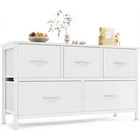 【Multifunction Dresser】Use stylish storage organizers to find endless organizational possibilities. Just place this clothing storage in the closet to offer a home for workout gear, blankets; place it in the nursery as a kids dresser to store baby clothes and baby stuff; place it in the entryway for storage saving unit for frequently used items. 【Large Capacity】This dresser offers sufficient space for daily necessities such as books, toys, etc. 5 large drawers are to satisfy various storage needs. The shelves are perfect for lamps, clocks without worrying about dropping. It works well in small areas while providing plenty of storage space, and mixes & matches with storage dressers or chest of drawers for a unique home style. 【Durable Material】This tall dresser is made of cationic materials, all other sides and gaps are made of high-quality breathable and non-woven synthetic fiber, harmless and wear-resistant, suitable for kids, teens and adults. Easy-pull drawers for smooth sliding and closing. For easy cleaning, just wipe with damp cloth and get it air-dried. 【Quality Construction】This fabric dresser combines water-resistant MDF board with a durable steel frame, make it sturdy under load 44 lb. Anti-tipping accessories are also equipped to prevent accidents. 【Easy to Assemble】The packages will come with all the tools and accessories for quick assembly, which allows only about 20 minutes to assemble your storage drawers with detailed instructions and the installation video. If you have encountered any problems, we would be delighted to help you find a solution and reply to your email within 24 hours.