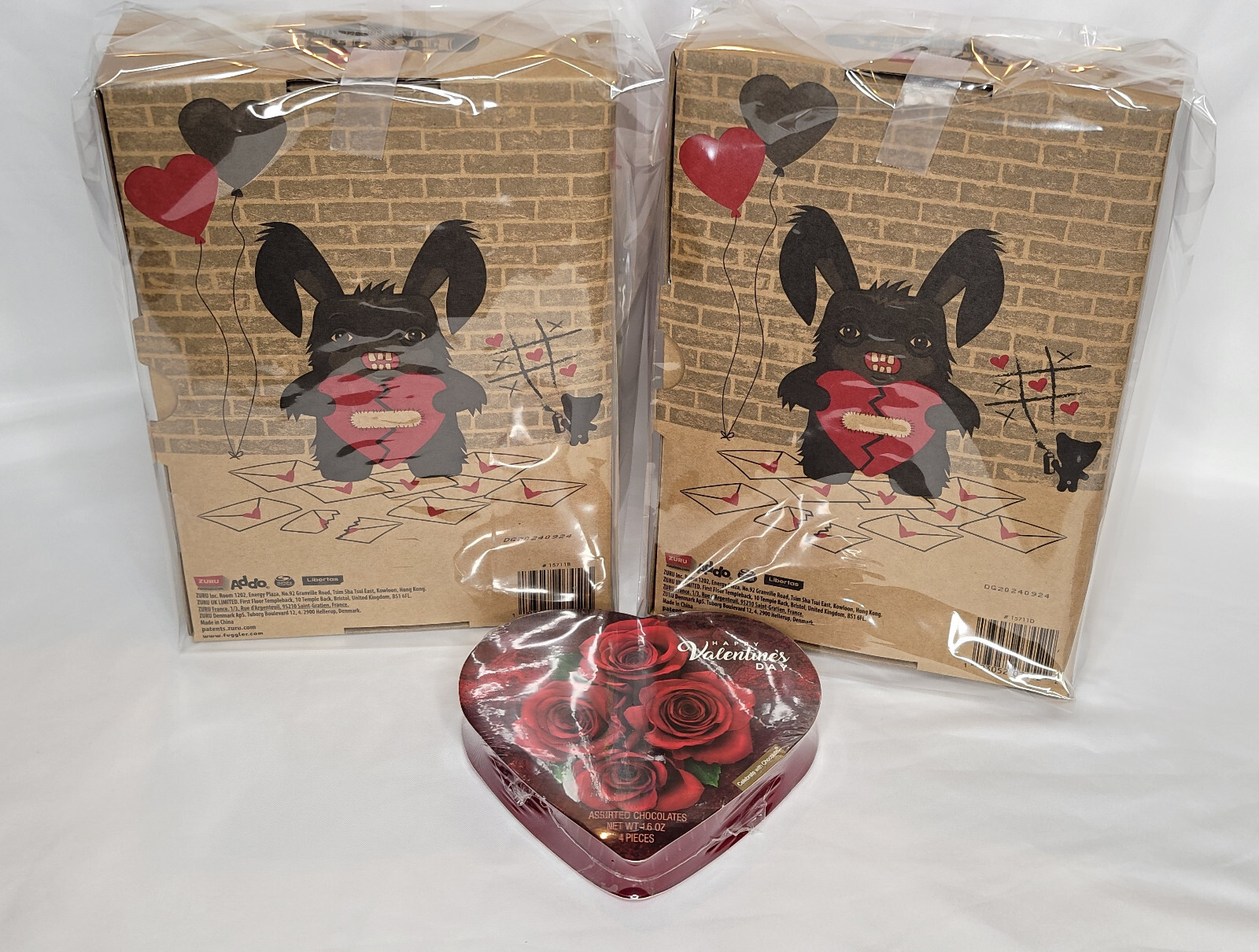 Bonus! Each set will come with 1 delicious box of chocolates. Day theme with red and pink colors, making them a unique addition to any collection. The packaging is original and unopened, manufactured in 2024. Celebrate Valentine's Day with a quirky twist using the Zuru Fuggler 9" LOVE FUGG plush. Dressed in a vibrant red and pink color scheme, this charming monster is perfect for those who appreciate the unique and the uncommon. This makes it an adorable addition to any collection or a delightful gift for someone special. Thank you & enjoy your Valentine’s Day! 😊