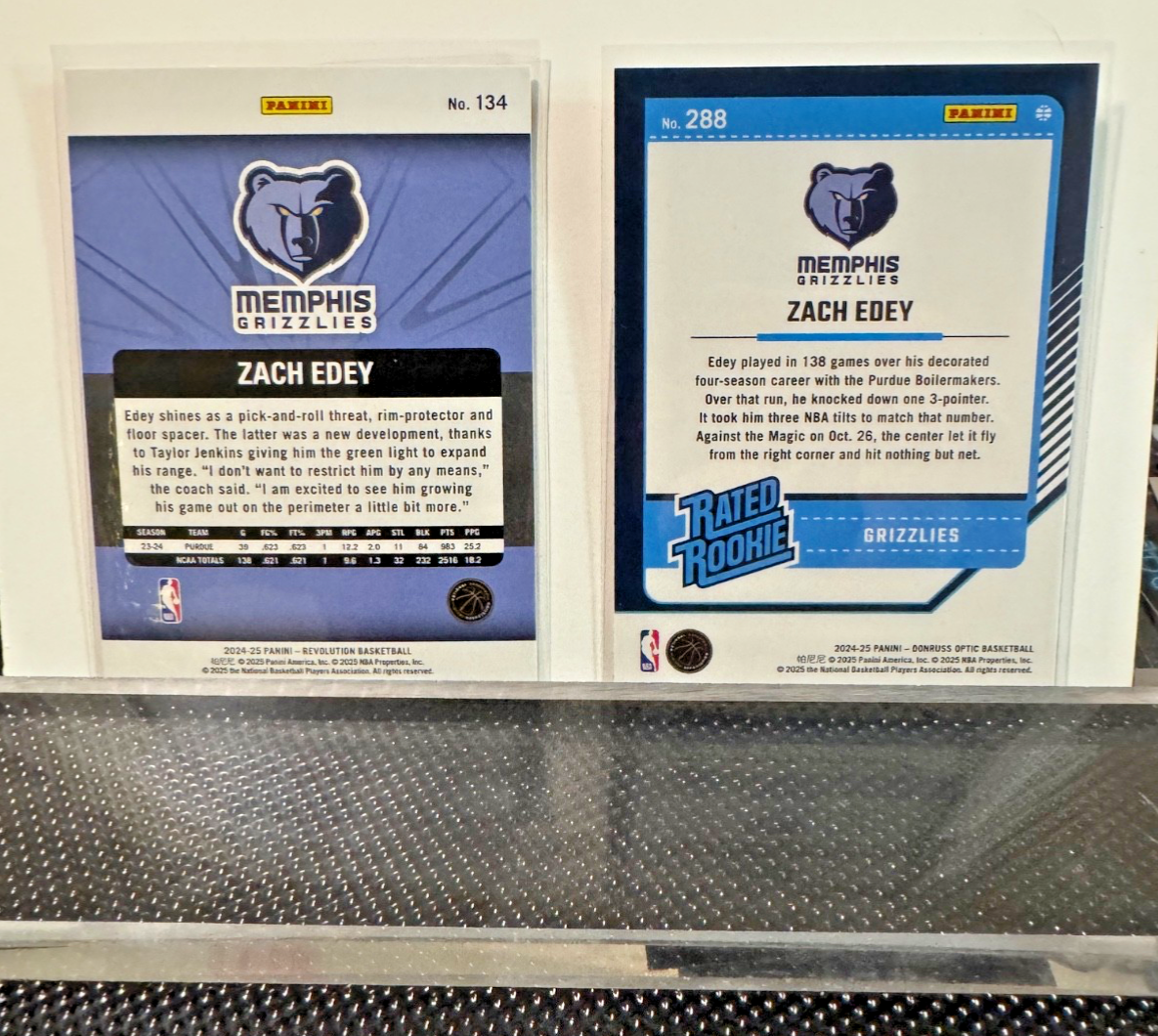 2024-25 Donruss Optic Rated Rookie Zach Edey Orange Hyper /299 Grizzlies. Zach Edey Rated Rookie 288. Revolution Rookie 134. Please refer to the images of these cards in the listings for details and condition. All cards will ship in hard protective sleeves.