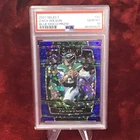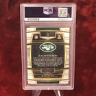 This limited edition Zach Wilson football trading card is a must-have for collectors. With a beautiful blue disco parallel and a high grade of 10 from Professional Sports Authenticator (PSA), this card is a true gem. The card is from the 2021 Panini Select set and features a framed design with a serial number, making it an exclusive collectors edition. The card is in excellent shape and has a 35 Pt. thickness, printed on high-quality card stock material. It is an original release and comes with a certificate of authenticity. The card showcases Zach Wilson, the talented rookie from the New York Jets team, who participated in the Super Bowl event. With only 25 prints available, this card is a rare find and a valuable addition to any collection.