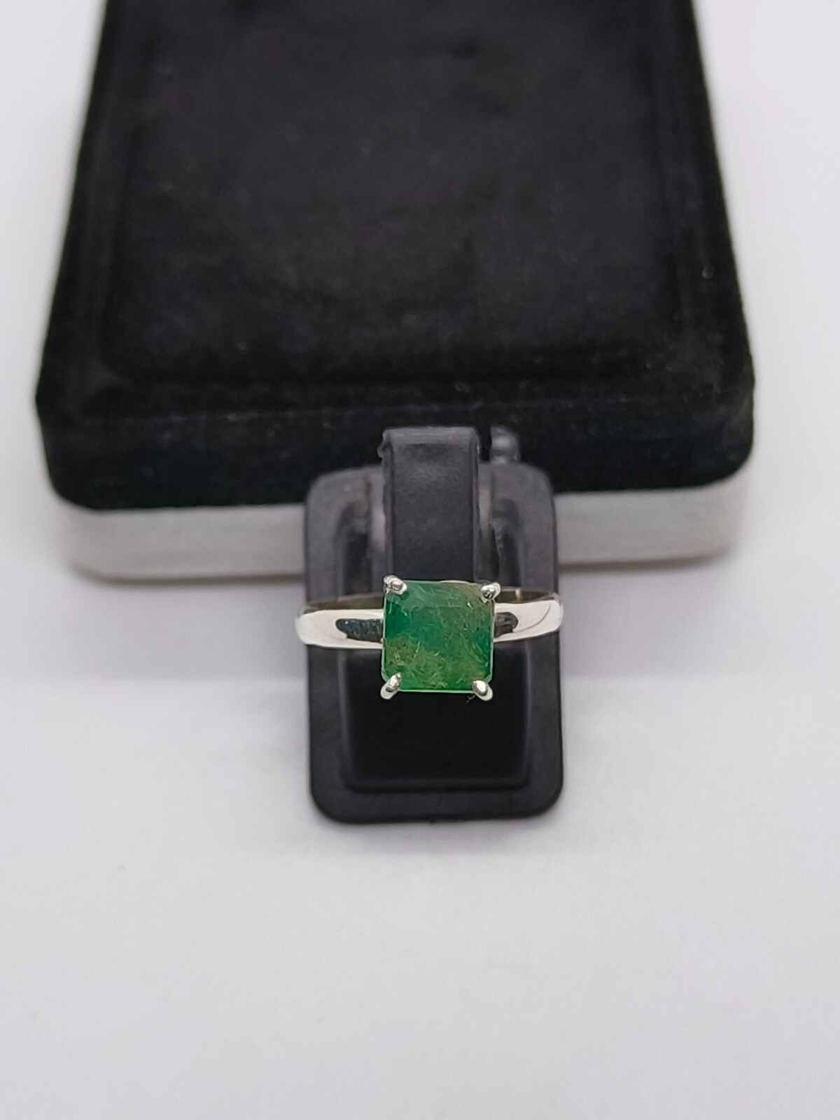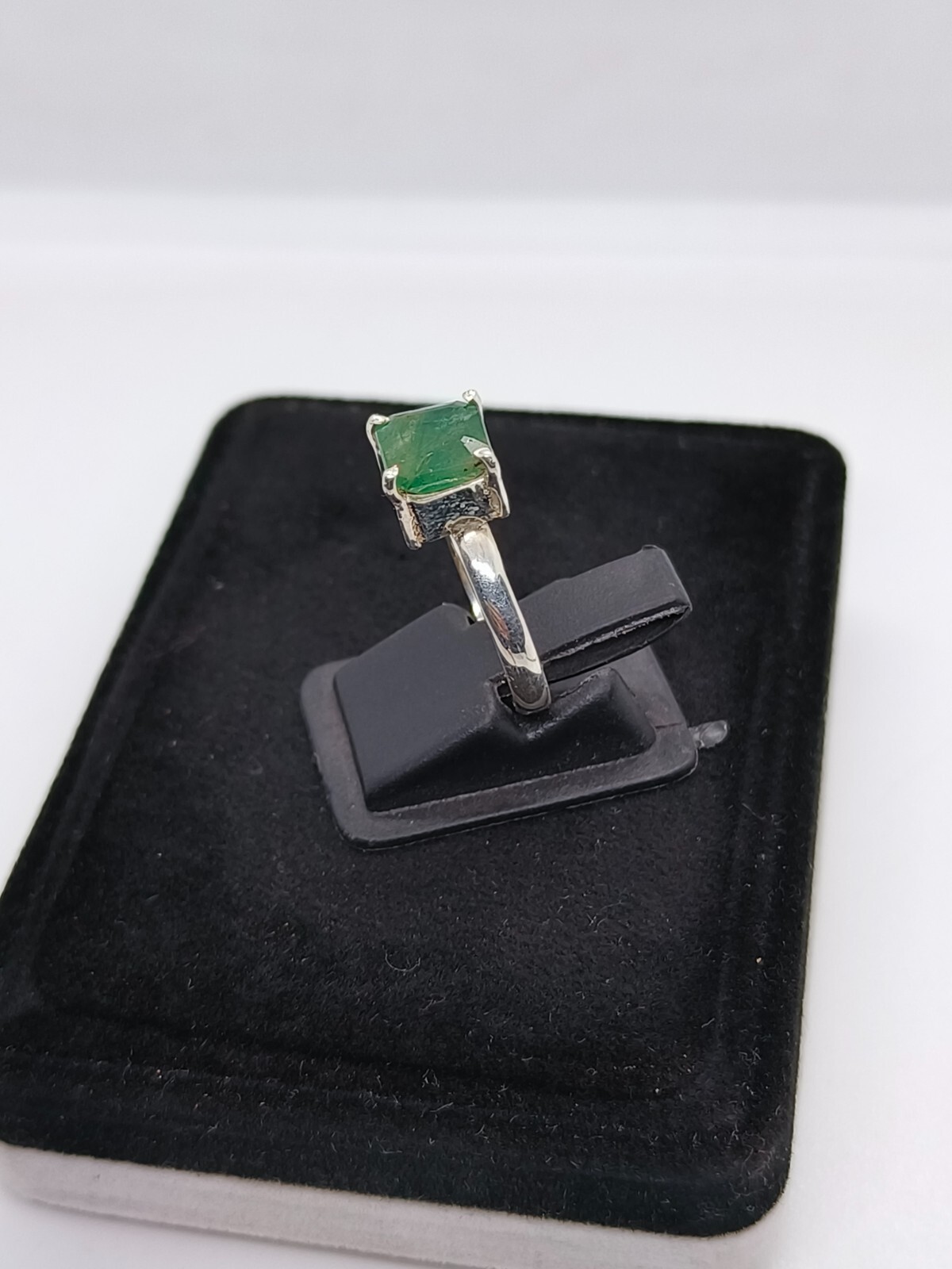 This product is a stunning sterling silver ring featuring a light green emerald stone in an excellent cut grade. The emerald is of eye clean clarity, making it a high-quality gemstone for your jewelry collection. The vintage design of the ring adds a unique touch to its aesthetic appeal, while the brand Sterling ensures a reputable and reliable purchase. With its wholesale availability and unique origins from Zambia, this ring is a fashionable and elegant addition to any jewelry collection.