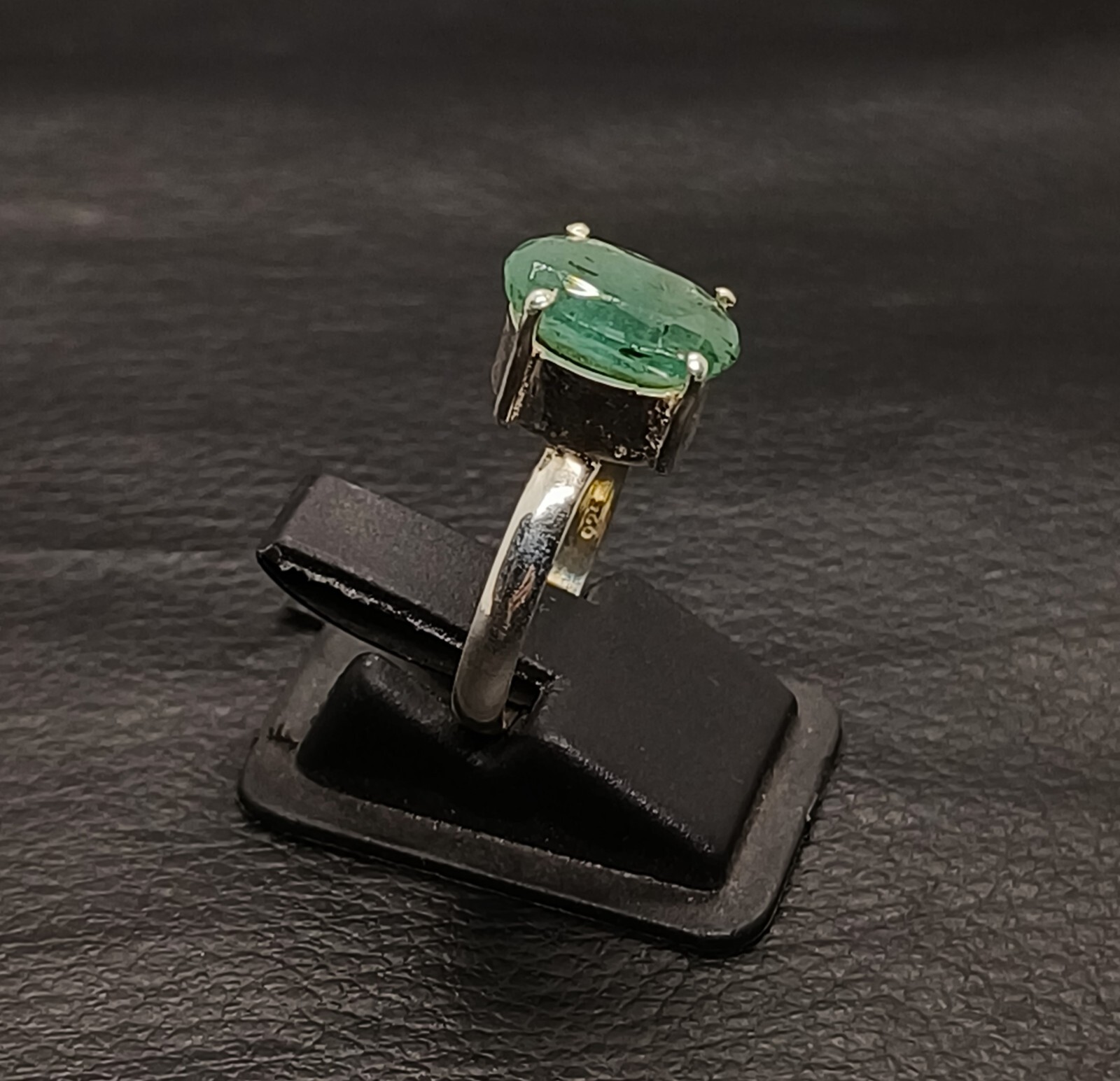 This product is a stunning sterling silver ring featuring a light green emerald stone in an excellent cut grade. The emerald is of eye clean clarity, making it a high-quality gemstone for your jewelry collection. The vintage design of the ring adds a unique touch to its aesthetic appeal, while the brand Sterling ensures a reputable and reliable purchase. With its wholesale availability and unique origins from Zambia, this ring is a fashionable and elegant addition to any jewelry collection.
