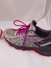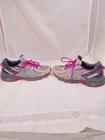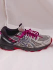 These are women's ASICS Gel Venture 6 running shoes in gray, size 7. The sneakers feature a lace-up closure, breathable comfort, rubber outsole, and synthetic upper material. They are designed for casual wear and suitable for all seasons. The shoes are part of the ASICS GEL product line, with a low-top sneaker style perfect for running and jogging.