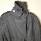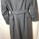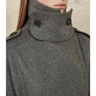 long coat made of wool blend fabric with lapel collar, long sleeves with cuffs and epaulettes, side patch pockets with flats, self-belt with metal buckle, back vent at hem, contrasting interior lining, front double breasted button closure 53% wool 29% polyester 11% polyamide 7% other fibres pit to pit 20" length 48"
