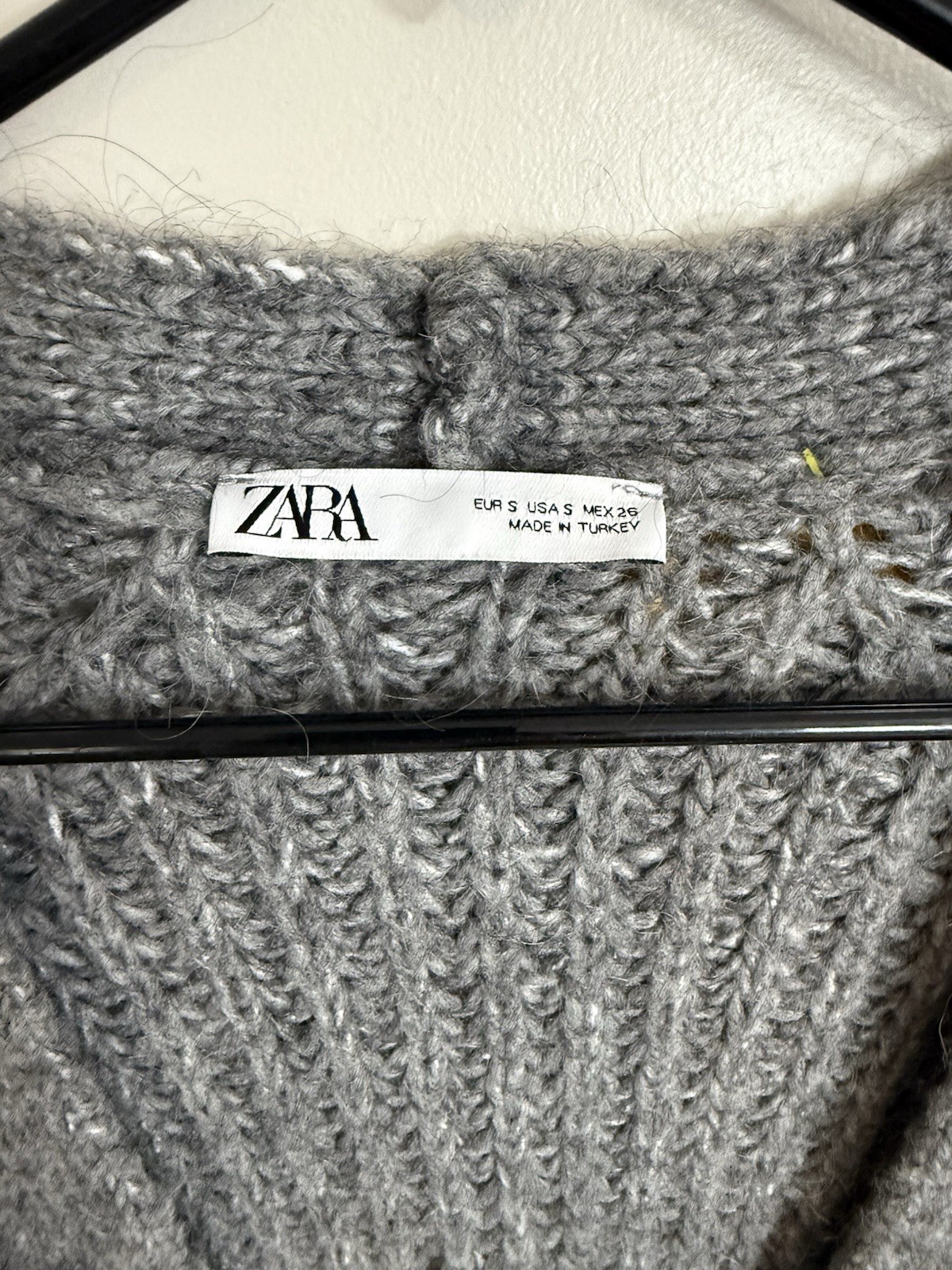 The Zara Chunky Knit Gray Front Open Women's Cardigan Sweater is a stylish and versatile piece of clothing perfect for the colder seasons. This sweater features a chunky-knit design in a classic gray color, making it easy to pair with a variety of outfits. With its open front and cardigan style, it adds a touch of hipster, bohemian, or preppy flair to any ensemble. Whether you're dressing up for a winter event or simply looking for a cozy yet fashionable sweater, this Zara piece is a must-have for your wardrobe.
