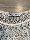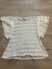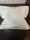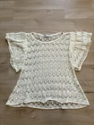 Add a touch of vintage charm to your wardrobe with this beautiful cream crochet lace top. Perfect for layering, this boho-inspired piece features: • Color: Cream / Off-white • Material: Lightweight crochet lace (semi-sheer) • Sleeves: Short flutter sleeves for a feminine touch • Style: Relaxed fit, ideal for casual wear, festivals, beach cover-ups, or layering over a camisole Condition: Gently pre-owned and in excellent condition with no visible flaws, stains, or snags. Care Tips: Hand wash recommended. Air dry flat to maintain shape. Medium size