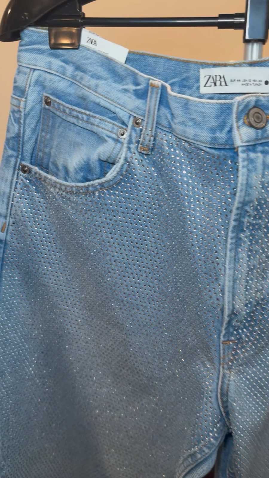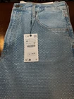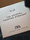 The Zara Crystal Cropped Straight Med Blue Jeans are a stylish addition to any woman's wardrobe. Made from cotton denim with a medium wash, these jeans feature a unique crystal pattern and a button closure. The crop style and regular fit make them a versatile option for casual or dressy occasions. The 5-pocket design adds practicality to these fashionable jeans from Zara. Perfect for a size 12 woman looking to make a statement with her outfit.