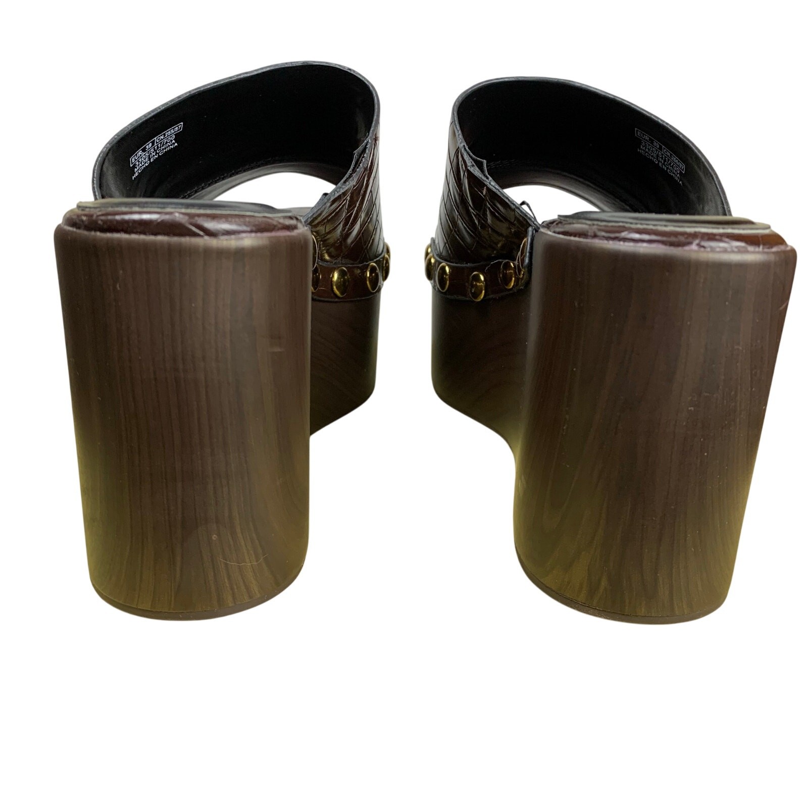 Zara Dark Brown Textured Wedge Studded Platform Mules Size 39 Dark brown textured Faux leather with subtle sheen Chunky Platform heel for comfort and height Stud accents adds edgy modern detail Slip-on mule design with open toe Statement shoes perfect for both casual and dressy looks SIZE: 39 CONDITION: Excellent Used Condition MEASUREMENTS: Heel Height: 4" Platform: 2 1/2" Width across ball of foot: 3 1/8" From a Smoke-Free/Pet Friendly Home Check out my closet for other similar sizes & don't forget to BUNDLE for more Discounts!! TAGS: Zara shoes Zara wedge mules Zara platform mules Zara studded wedges Zara leather mules Zara textured wedge shoes Zara dark brown sandals Zara size 39 shoes Zara platform wedges Zara European style mules Zara street style shoes Zara trending wedges Zara party shoes Zara night out heels Zara chunky platforms Zara 2000s revival shoes Zara Y2K wedges Zara festival shoes Zara fashion influencer style Zara Zara model off duty shoes Zara casual chic Zara everyday wedges Zara going out heels Zara minimalist shoes Zara city style shoes Zara runway inspired Zara trending platform mules Zara spring summer shoes Zara fall fashion wedges Festival shoes Model off duty Euro Summer Chic Vaction Resortcore cruise Summer shoes Night out look date night Comfy wedges Festival ready Brown Platforms size 6 Extreme Platforms Y2k style 2000s syle disco aesthetic Dark Brown Platform sandals size 6