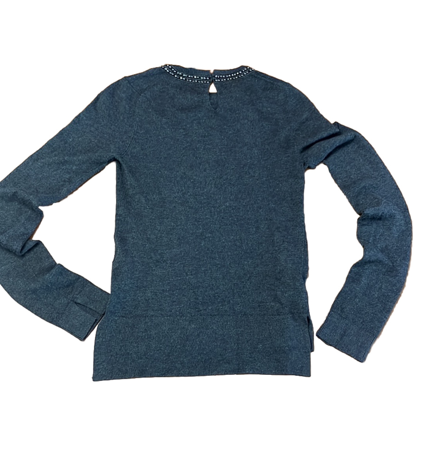 Elevate your wardrobe with this stunning Zara embellished sweater in a charming heather gray color. The pullover style features a crewneck and long straight sleeves that are perfect for the winter, fall, and spring seasons. The sweater is made of a lightweight, stretchy knit material that is super soft to the touch and comfortable to wear all day long. The sweater is adorned with beautiful beaded accents on the neckline to add a touch of glamour to the sweater. It is a regular fit size S and is perfect for any occasion, including travel, weddings, parties, and workwear. This sweater is made of a blend of nylon, elastane, and viscose materials, making it durable and easy to care for. See pics for details. Overall excellent preowned condition. Missing 1 hook on back keyhole opening. ( See last 2 pics) Ships same/ next day! Reasonable offers welcome!