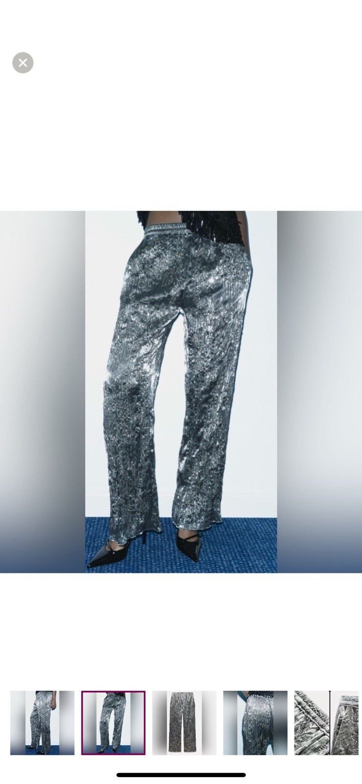 The Zara Embroidered Beaded Sequin Pant from the ZW Collection in size M is a stylish and elegant pair of dress pants perfect for formal occasions or parties. Made of polyester material, these silver pants feature intricate beadwork, sequin accents, and embroidered detailing for a sophisticated look. The pants have a regular fit with a straight leg style and come with features like an elastic waist, adjustable waist, pockets, and breathable material, making them both comfortable and practical for year-round wear. Handmade with attention to detail, these pants are a must-have for any fashion-forward woman.