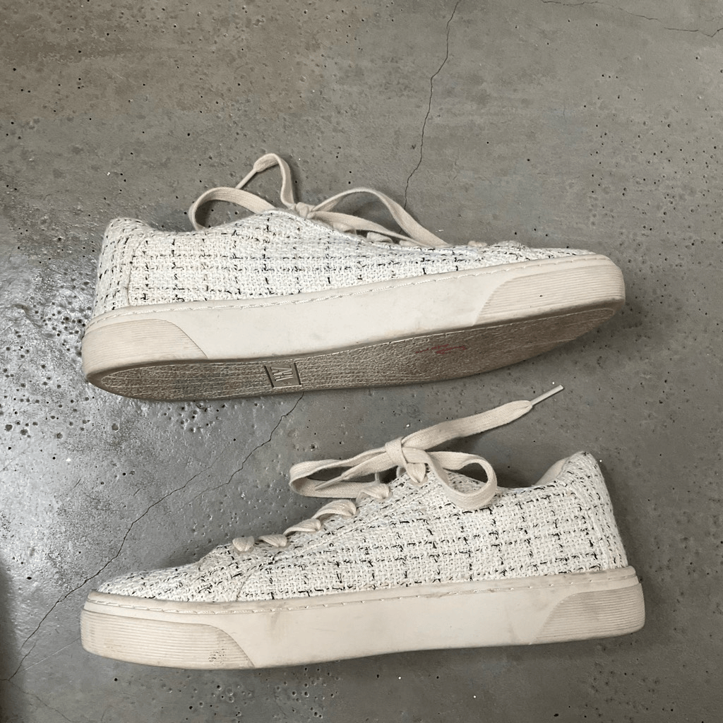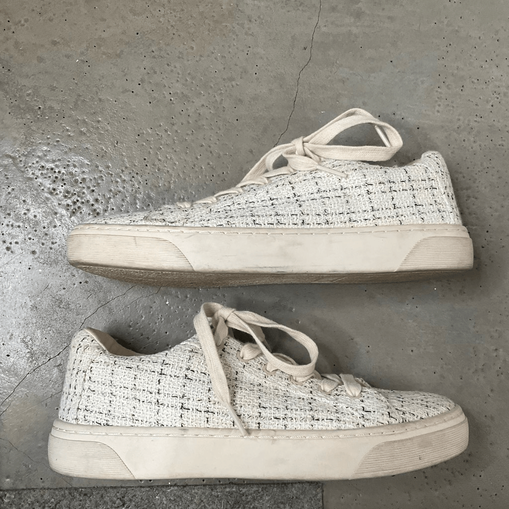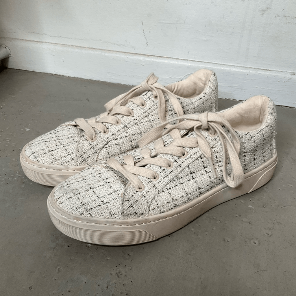 Zara Fabric Sneakers Plaid print Lace up Color: Cream Size: 38/7.5 Excellent Condition