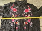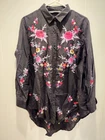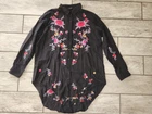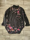 New without tags! Zara Premium Denim Collection Black lightweight button front top, high low hem. Embroidered boho flowers on the front and back. Long sleeve with optional roll tab sleeves. Oversized fit. Size Medium ,baggy , can fit Large Bloggers Favorite Cotton Viscose Sleeves can be buttoned up or full sleeve down No Rips, Stains or Tears. See pictures for details, measurements and condition. ๐ฌ Smoke Free Home ๐ฆ Iโm open to fair offers ๐ง Happy to answer questions ๐๐ป Thank you for checking out my closet