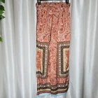 Beautiful satin floral paisley geometric boho print wide leg palazzo pants by Zara. Side zipper. Slits at the hems. Elastic waistband. Size Medium. Please see photos for approx measurements Excellent condition. Boho, gypsy, flared, geometric, abstract, squares, bohemian, flower print, retro, whimsical, lightweight. Shop with confidence, item(s) ship with care and customer in mind. Thank you!