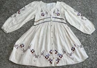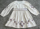 Zara Embroidered Dress Girls Size 13/14 Beige Button Front Long Sleeve Boho Pre-owned. Great condition!! PLEASE REVIEW ALL PICTURES CAREFULLY. TRY CAPTURE AS MUCH INFORMATION IN THE IMAGES AS WE CAN. For clothing, items are listed by factory tag, but measurements are included in pictures. These are approximate measurements and may vary from tag size. Please review these prior to purchasing. Actual Colors of Garments may vary slightly due to photography. I will ship this item out via USPS Mail with a tracking number for confirmation. Y3