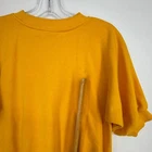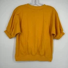 Good preowned condition, but with some color transfer on the back, Zara sweatshirt Cotton elastane blend French Terry knit - mustard yellow - machine wash Crew neck, short dolman style sleeves with ribbed knit cuffs, slightly curved ribbed hemline with side slits Girls size 11/12 - measurements in photos