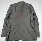 77% Wool 23% Silk Condition: Excellent used condition. Free and clear of any stains, rips, tears. Front Buttons:2 Vents:2 Color: Gray Size: 40R Measurements inches: Shoulder-17.25-left shoulder seam to right shoulder seam at top rear Chest-20.75-left armpit to the right armpit across Waist-19.25-width measurement at the natural waist of the jacket from left to right flat Sleeve-26-front shoulder seam top to cuff edge on the front Rear Length-30.25-rear bottom of collar to bottom of jacket Shipping: These will be shipped in a protective zip lock bag in a Flat Rate Envelope to protect from moister.