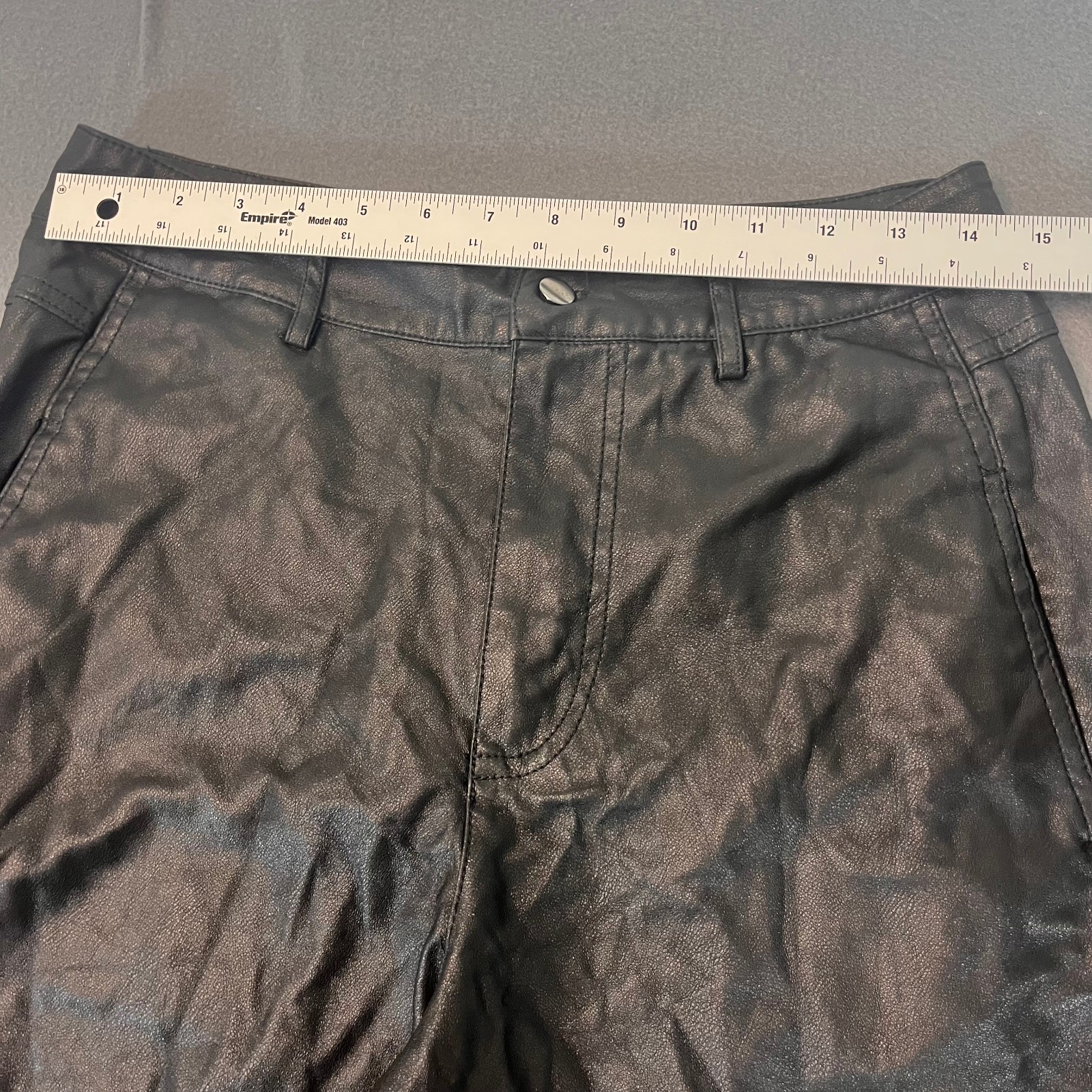 The Zara Women's Medium Black Faux Leather Pants are a stylish and versatile addition to any wardrobe. Featuring a straight leg and high rise cut, these pants are perfect for a variety of occasions from casual outings to more dressy events. The addition of back pockets adds both functionality and a touch of flair to the design, making these pants a must-have for the modern woman looking for a chic and comfortable option for the colder seasons.