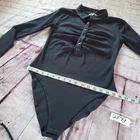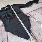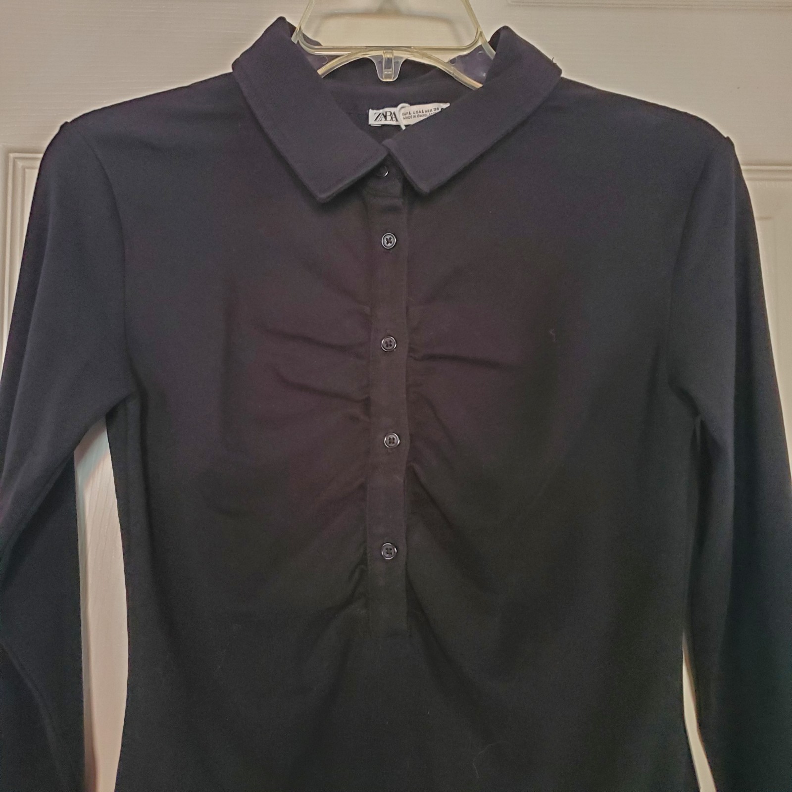 This elegant black bodysuit from Zara showcases a collared neck and long sleeves, crafted from a stretchy material for a sleek fit. Its classic design makes it perfect for layering or wearing solo, offering both comfort and style. It's in excellent condition. Please see pictures for details and let me know if you have any questions I ship the next business day